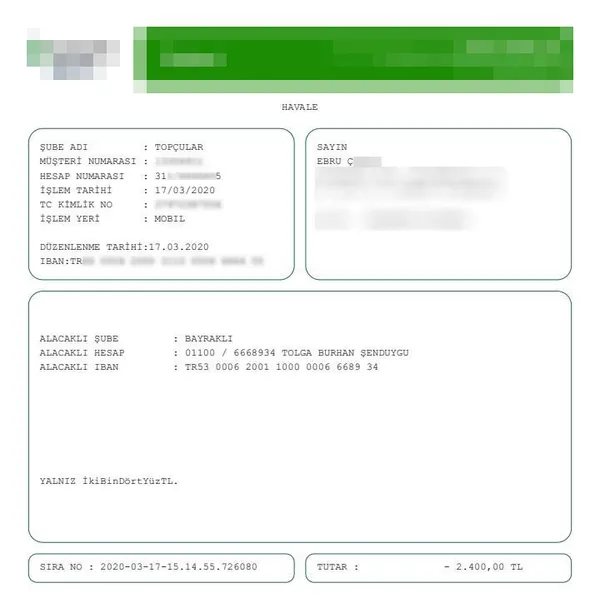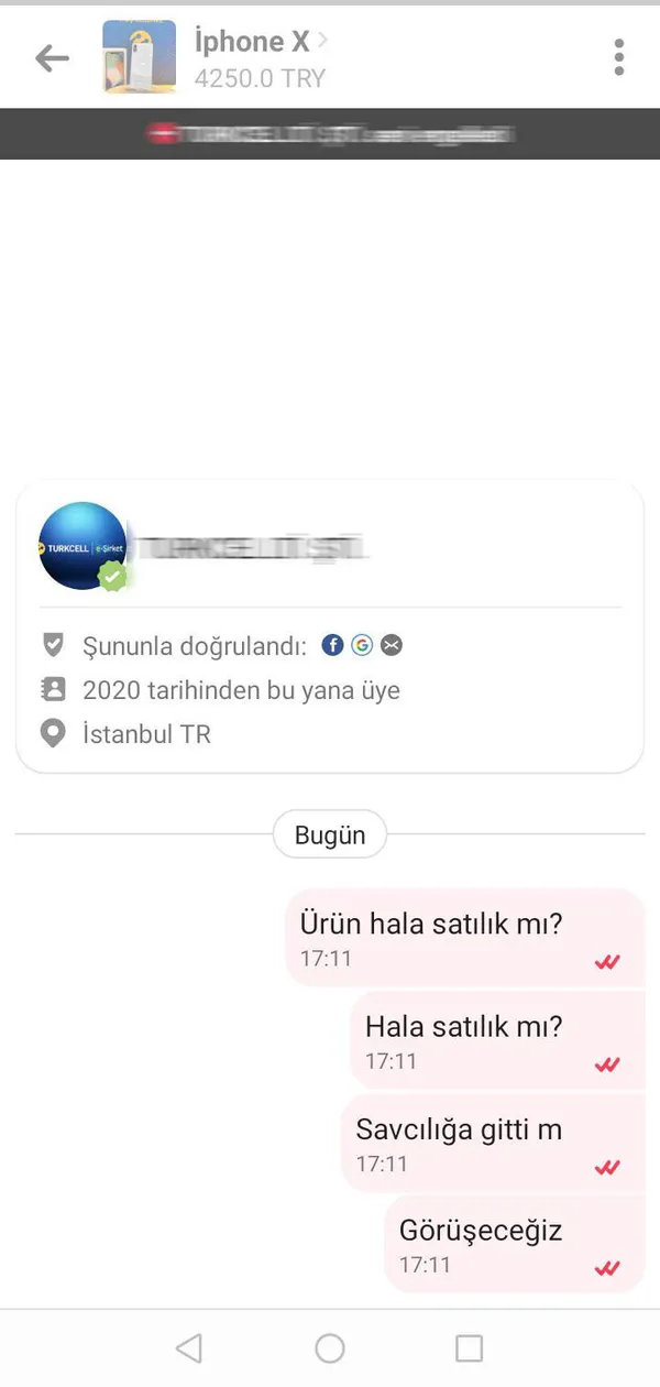 Ebru Ç., 17 Mart günü Letgo uygulaması üzerinden Iphone marka sıfır bir telefon beğendi. 4 bin 250 lira olan telefon için satıcı önce 500 lira gönderilmesini istedi. Satıcı daha sonra, 'Mağazamız çok yoğun. Satışın sizin adınıza olması için 2 bin 400 lira daha göndermeniz gerekiyor" dedi. Dolandırıcı, daha da inandırıcı olması için İstanbul Havalimanı'ndaki bir mağazanın fotoğrafını ve konumunu Ebru Ç. ile paylaştı. Fotoğrafları görünce satıcıya güvenen Ebru Ç., karşıdakinin dolandırıcı olduğundan habersiz şekilde o parayı da Tolga Burhan Şenduygu'nun hesabına aktardı. Parayı alan sözde satıcı, Ebru Ç.'nin mesajlarına bir daha hiç cevap vermedi. Dolandırıldığını anlayan talihsiz kadın parayı hemen geri çekmek istedi ama başarılı olmadı.