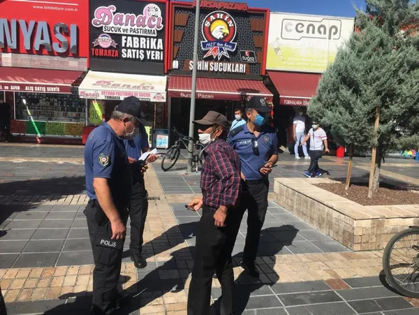 Kayseri Valisi Şehmus Günaydın ve Büyükşehir Belediye Başkanı Memduh Büyükkılıç'ın Cumhuriyet Meydanı'nda başlattığı denetimler sırasında sigara içmek için maskesini takmayan Fatih S. isimli vatandaşa ekipler tarafından cezai işlem uygulandı.