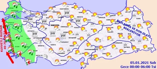 Az bulutlu ve açık geçeceği tahmin ediliyor. Sabah ve gece saatlerinde bölgenin kuzeydoğusunda yer yer pus ve sis hadisesi ile birlikte hafif buzlanma ve don olayı bekleniyor.