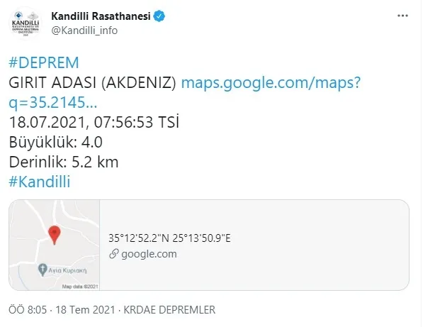 2021.07.18 01:20:42 34.7672 25.2093 5.0 -.- 2.4 -.- GIRIT ADASI (AKDENIZ) İlksel