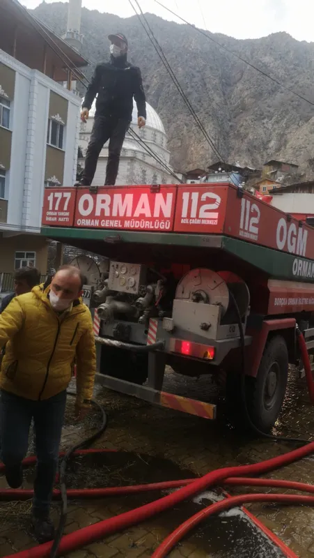 İhbar üzerine köye Yusufeli ve çevre il ve ilçelerden itfaiye ve Orman Müdürlüğü'ne ait arazözler ile AFAD ve sağlık ekipleri sevk edildi.