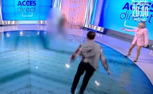 Saldırı sırasında canlı yayın kesildi ve saldırgan kadın stüdyo dışına çıkartıldı.