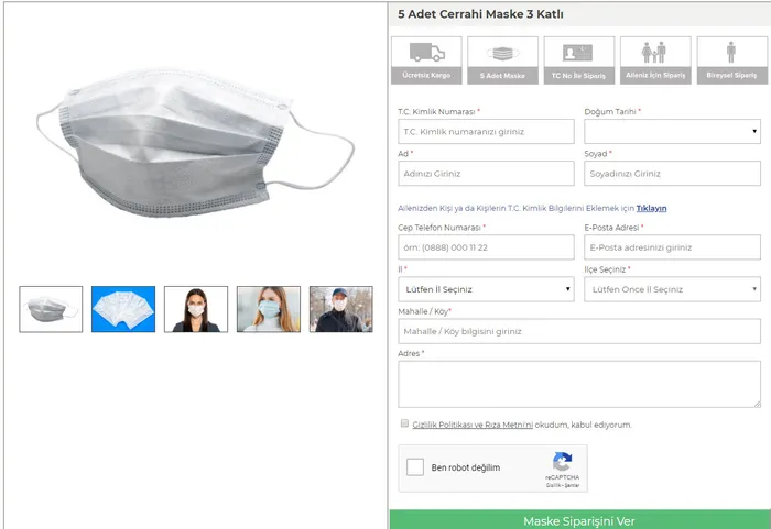 NOT: Belirttiğimiz gibi, ücretsiz maske siparişi 65 yaş altı ve 20 yaş üzeri kişiler için gerçekleştirilmelidir.