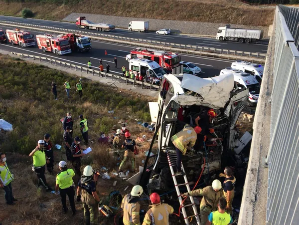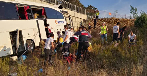 Karabük'ten İstanbul'a gelen yolcu otobüsü Kuzey Marmara Otoyolu'nda bariyeri aşarak üstgeçide çarptı. Feci kazada 5 kişi hayatını kaybederken 25 kişi yaralandı. Yaralılar çevre hastanelere sevkedildi. Yaralılardan 41 yaşındaki Cemal Korkmaz, "Her şey bir anda oldu, kendimi yerde buldum" dedi.