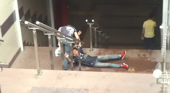 Karşı koymaya çalışırken yere düşen evsiz vatandaşı hırpalayan gaspçı çantayı tamamen almak için yerde yatan adamı birkaç defa yere çarptı. O esnada çantadaki kağıt ve bozuk paralar yere saçıldı. Dökülen paraları alan gaspçı olay yerinden uzaklaşmak için hızla merdivenlerden yukarı çıktı.