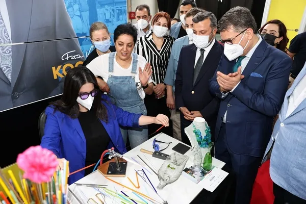 Yüreğir Belediyesi standını ziyaret eden AK Parti Genel Başkan Yardımcısı ve Sosyal Politikalar Başkanı Jülide Sarıeroğlu, canlı performans alevle boncuk yapımı etkinliğine katılarak eğitmenlerden cam yapım teknikleri hakkında bilgi aldı.