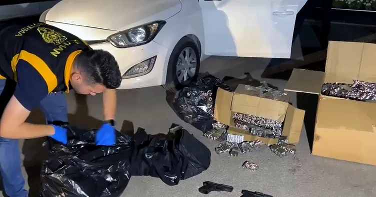 İş yerinde ve park halindeki otomobilde arama yapan polis, reçeteye tabi 74 bin 697 uyuşturucu içerikli hap, 3 ruhsatsız tabanca, 38 uyuşturucu hap, 6,33 gram esrar, 15,16 gram eroin, hassas terazi ve uyuşturucu satışından elde edildiği değerlendirilen 401 bin 390 lira ele geçirdi. Polis, iş yeri sahibi Baran K.'yi ise Sarıçam ilçesinde otomobiliyle seyir halindeyken yakaladı.
