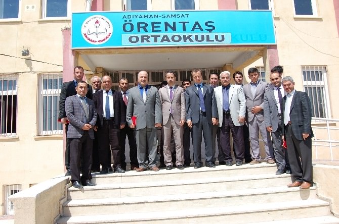 Örentaş İlk ve Ortaokulunda düzenlenen plaket takdim törenine Samsat Kaymakamı Kürşad Atak, İlçe Milli Eğitim Müdürü Abdullah Akın, İlçe Özel İdare Müdürü Mustafa Kandemir ile okul müdürleri katıldı.