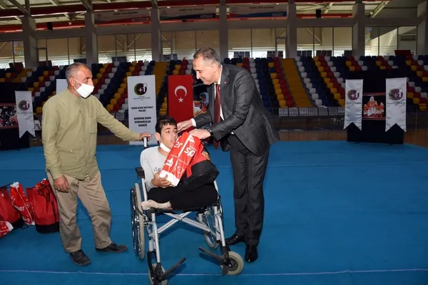 Konuşmaların ardından Vali Mahmut Çuhadar, 40 Down Sendomlu çocuğa içinde spor malzemeleri ve ekipmanlarından oluşan bir çanta dağıttı.