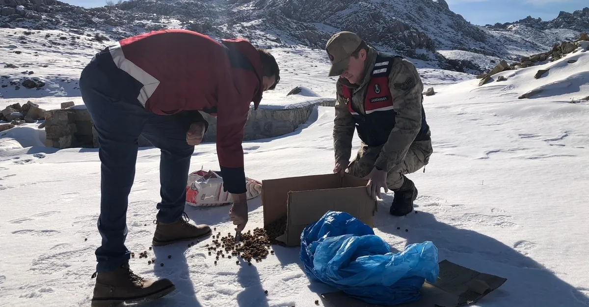 Kış mevsiminin başlamasıyla birlikte özelikle dağlık alanlarda ve kar yağışının yoğun olduğu bölgelerde çalışma yapan jandarma ve Gerger ilçe Tarım ve Orman Müdürlüğüne bağlı ekipler farklı bölgelere hayvan çeşitleri göz önünde bulundurularak farklı yiyecekler bırakıldı.