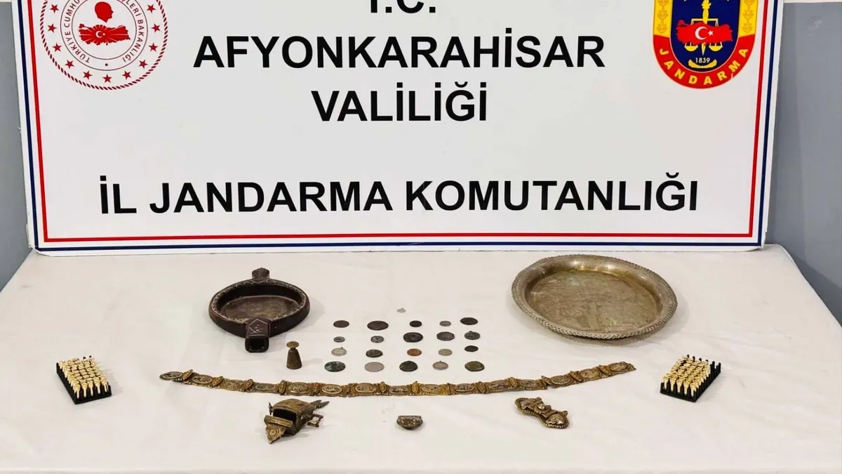 Afyonkarahisar'da kaçakçılık ve yasa dışı faaliyetlerle mücadele kapsamında önemli bir operasyona daha imza atıldı. Afyonkarahisar İl Jandarma Komutanlığı ekipleri tarafından, Sinanpaşa ilçesine bağlı Garipçe Köyü'nde adli makamlardan alınan arama kararı doğrultusunda bir ikamete operasyon düzenlendi. Yapılan aramalarda, 24 adet eski eser niteliği taşıdığı değerlendirilen sikke ve çeşitli objeler ile birlikte 82 adet 7.65 milimetre çapında tabanca fişeği ele geçirildi. Ele geçirilen tarihi eserlerin hangi döneme ait olduğunun yapılacak uzman incelemesi sonucunda netlik kazanacağı öğrenildi.