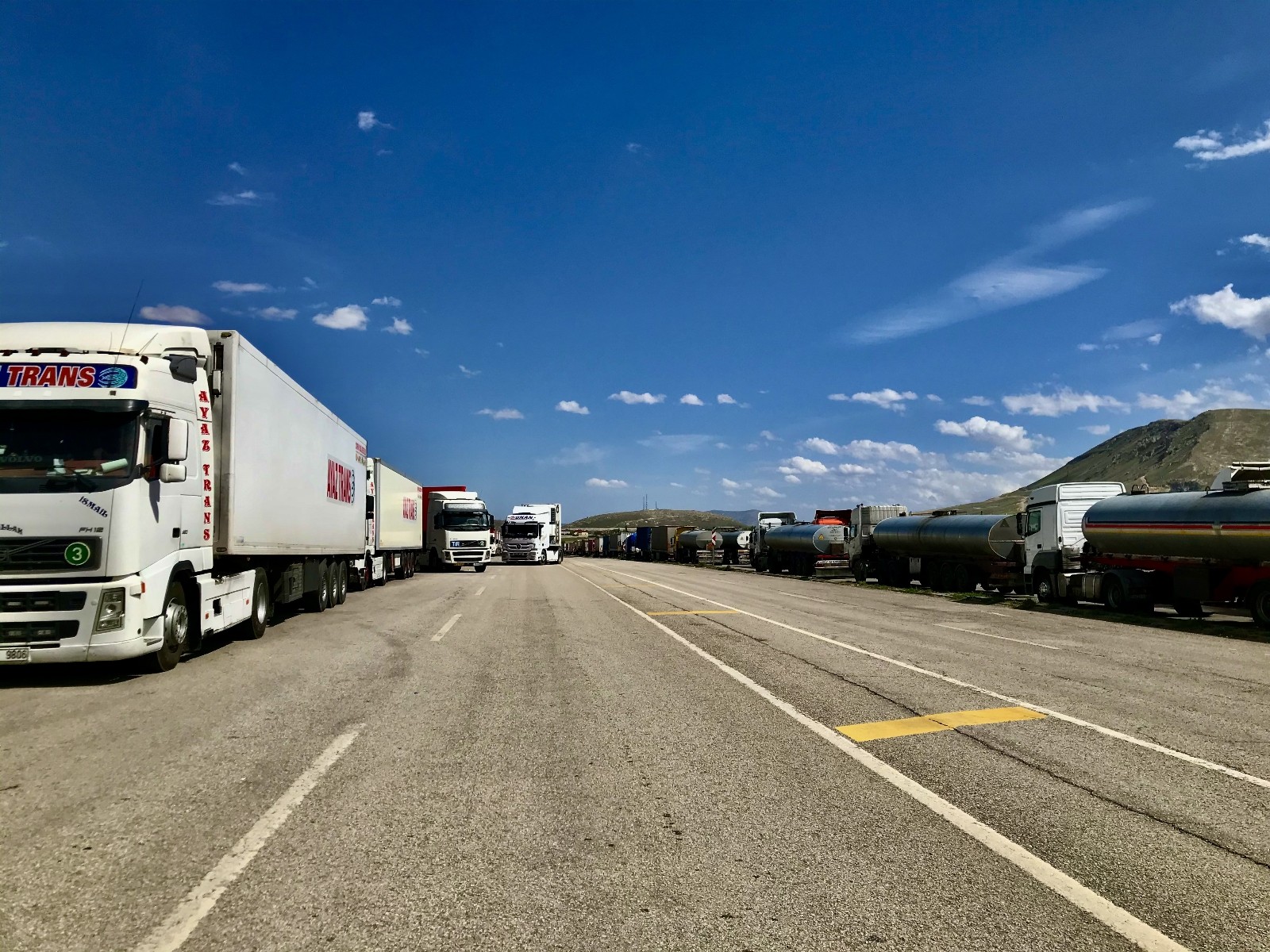 Cumhurbaşkanı Recep Tayyip Erdoğan’ın Türkiye ile İran sınırındaki 3 sınır kapısının açılması talimatı vermesinin ardından Gürbulak Gümrük Kapısı’nda hazırlıklar başladı. Sağlıktan ekonomiye birçok alanı olumsuz etkileyen korona virüs, etkisini en çok ekonomi alanında hissettirdi. Van ekonomisinin korona virüs nedeniyle zarar görmesinin ardından Cumhurbaşkanı Recep Tayyip Erdoğan’ın, Türkiye ile İran sınırındaki 3 sınır kapısının 17 Mayıs’tan sonra açılması talimatı verdiği belirtildi. Bu kapsamda Ağrı’nın Doğubayazıt ilçesinde bulunan Gürbulak Gümrük Kapısı’nda da hazırlıklar başladı. Gürbulak Sınır Kapısı önünde İran’a geçmek için bekleyen 7 kilometrelik tır kuyruğu arasında bekleyen Mustafa Akpolat, “Biz burada 3 gündür bekliyoruz. Biz tanker sahasındayız burası daha hızlı ilerliyor. İnşallah biran önce geçeriz. Burada bekleyen tahmini bin 700 tır var. Bizler de bekliyoruz, daha geçemedik" şeklinde konuştu.