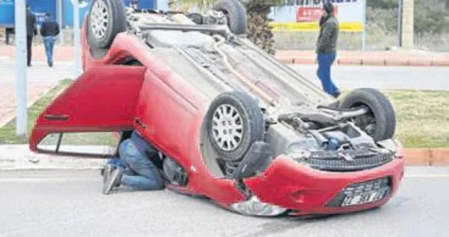 Antalya'da takla atan otomobildeki iki arkadaş, kazayı hafif sıyrıklarla atlattı. Kaza, Uncalı Mahallesi Gazi Mustafa Kemal Bulvarı üzerinde meydana geldi. 07 KBE 22 plakalı otomobili kiralayan Çağlar Batuhan Şengül, önüne çıkan otomobile çarpmamak için direksiyonu kırınca araç takla attı. 20 metre sürüklenen otomobil refüje çarparak durabildi. Çağlar Batuhan Şengül ile arkadaşına ayakta müdahale edildi.
