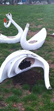Mezitli Belediyesi'nden yapılan açıklamaya göre, Park ve Bahçeler Müdürlüğünün bir çalışması daha hizmet düşmanlarının saldırısına uğradı. Kenti güzelleştirmek için Aratos Spor Tesisleri yanına konulan kuğu figürleri kimliği belirsiz kişiler tarafından parçalanarak yok edildi.