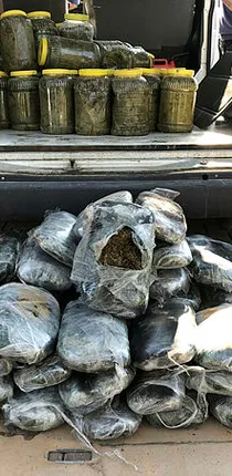 Narkotik Suçlarla Mücadele Şube Müdürlüğü ekipleri, Tarsus-Adana- Gaziantep (TAG) otoyolunda şüphelendikleri kamyoneti durdurdu. Narkotik köpeği 'Kanas' ile yapılan aramada, aracın tavan bölümünde 25 kilo 950 gram esrar yakaladı. Uyuşturucu kaçakçılarının, yakalanmamak için, aracın içerisine salamura asma yaprağı doldurup, köpekle yapılacak olan aramadan kurtulmak istedikleri ortaya çıktı.