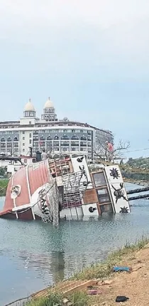 Antalya'nın Manavgat ilçesinde bakımı yapıldıktan sonra ırmağa indirilen Arap Baba 2 isimli tur teknesi Manavgat Irmağı'nda su seviyesinin düşmesi nedeniyle yan yattı.