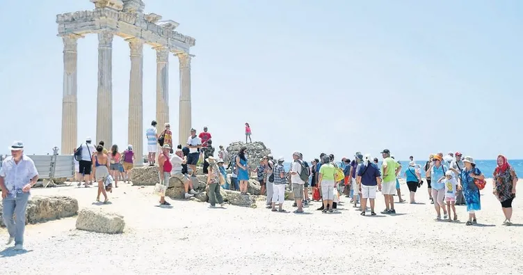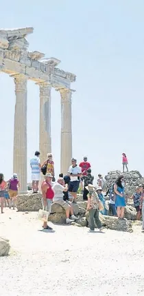 ANTALYA'NIN Manavgat ilçesindeki Side Antik Kenti'nde turist yoğunluğu yaşanıyor. 200 binden fazla yatağın bulunduğu Manavgat'ta tatillerini geçiren turistler, Side Antik Kenti'nde tapınaklar, tiyatro ve Side Müzesi'ni gezerek tarihi eserleri inceliyor. Side çarşısından alışveriş yapan turistler özellikle Apollon Tapınağı'nda hatıra fotoğrafı çektiriyor ve özçekim yapıyor. Gün boyunca otobüslerle çok sayıda turist Side Antik Kenti'ne gelirken, hareketlilik gece de devam ediyor. Tatilciler Side'deki eğlence mekanlarında vakit geçiriyor.