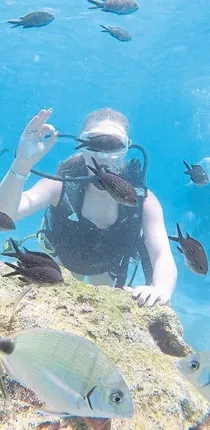 TÜRKIYE'NIN önemli dalış merkezleri arasında yer alan Kemer'de turistler dalış okulları aracılığıyla su altını keşfediyor. Akdeniz'in derinliklerine dalan turistlerin çevrelerindeki balıkları elleriyle beslemeleri renkli görüntüler oluşturdu. Dalış öncesi kısa bir eğitimden geçirilen turistler, suyun metrelerce altına dalarak balıklarla adeta dans ediyor. Teçhizatla ilk kez dalan turistler birkaç dakika nefes alma ve teçhizatı kullanma egzersizinden sonra sualtının çeşitli türlerde balıklarla dolu doyumsuz güzelliklerini tecrübe ediyor. 3-5 metre derinlikte çeşitli büyüklükteki binlerce balığın oluşturduğu sürülere ekmek veren turistler, oluşturulan yapay resiflerden jet ski ve sandala da büyük ilgi gösteriyor.