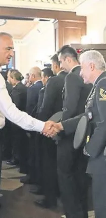 KURBAN Bayramının birinci günü Antalya Valiliği'nde bayramlaşma töreni düzenlendi. Bayramlaşma törenine Kültür ve Turizm Bakanı Mehmet Ersoy, Vali Münir Karaloğlu, AK Parti Antalya milletvekilleri Mustafa Köse ve Atay Uslu, CHP Antalya Milletvekili Çetin Osman Budak, MHP Antalya Milletvekili Abdurrahman Başkan, İyi Parti Antalya Milletvekili Tuba Vural Çokal, Garnizon Komutanı Piy. Alb. Tahir Savran, Konyaaltı Belediye Başkanı Muhittin Böcek ile çok sayıda kamu kurum ve kuruluşlarının yöneticileri, sivil toplum örgütlerinin temsilcileri katıldı. Saat 14.00'te valilik makamında gerçekleşen törene, siyasi partilerin il başkanları da katıldı. Bakan Ersoy, Vali Karaloğlu ve milletvekilleri, törene katılanların bayramını kutladı.