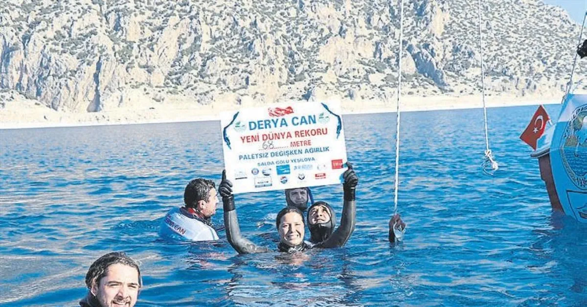 Serbest dalış dünya rekortmeni milli sporcu Derya Can, Burdur'un Yeşilova ilçesindeki Salda Gölü'nde yapacağı kariyerinin 10'uncu dünya rekoru denemesi için çalışmalara başladı. Geçen sene Salda Gölü'nde 2 dakika 5 saniyede 68 metre derinliğe ulaşıp, serbest dalış dünya rekorunu kıran Can, beyaz kumsalı ve suyunun berraklığıyla 'Türkiye'nin Maldivleri' olarak nitelendirilen gölde, 23 Ağustos'ta yeni bir rekor denemesi gerçekleştirecek.