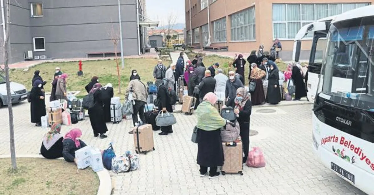 Suudi Arabistan'dan Umre sonrası gelen 586 kişilik kafile Isparta'ya geldi. Umre'den kafileler halinde gelen vatandaşlar havalimanından otobüslerle alınan kafilenin tamamının maske taktığı görülürken, otobüs şoförleri de beyaz kıyafet, maske ve eldiven kullandı. Kafile, karantinada kullanılmak üzere belirlenen Isparta Şehir Hastanesi'ne çok yakın noktada bulunan, bin kişi kapasiteli Murad Hüdavendigar Öğrenci Yurdu'na getirildi.