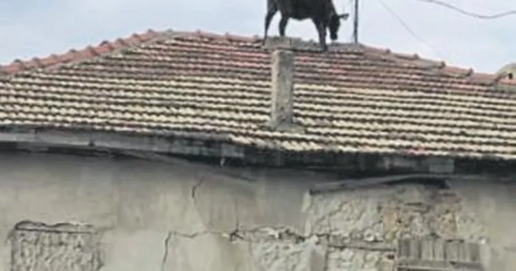 BURDUR'UN Bucak ilçesinde ahırdan kaçan dana, evin çatısına çıktı. Görenleri şaşırtan olay Çamlık Köyü'nde yaşandı. Besici Mesut Uğraş'ın kurbanlık beslediği dana ahırdan kaçtı. Mesut Uğraş'ın yakalamaya çalıştığı dana, önce ahırın oradan da evin çatısına çıktı.
