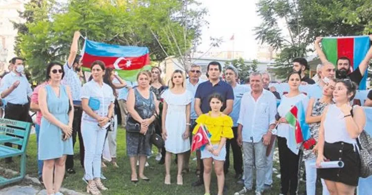 ANTALYA'DA yaşayan Azerbaycan Halkları Dostluğu Derneği ve Azerbaycan Kültür ve Dayanışma Derneği ile diğer dernek üyeleri, Muratpaşa ilçesinde yer alan Azerbaycan Kültür Parkı'nda, Ermenistan ordusunun Azerbaycan- Ermenistan sınırında gerçekleştirdiği saldırıları kınadı. Azerbaycan Kültür Parkı'nda düzenlenen protestoya yaklaşık 50 kişi katıldı. Eylemde, Azerbaycan bayraklarının yanı sıra, Türk bayrakları da yer aldı. Azerbaycan vatandaşları, 'Karabağ bizimdir, bizim kalacak ' ve 'Şehitler ölmez, vatan bölünmez' gibi sloganlar attı.