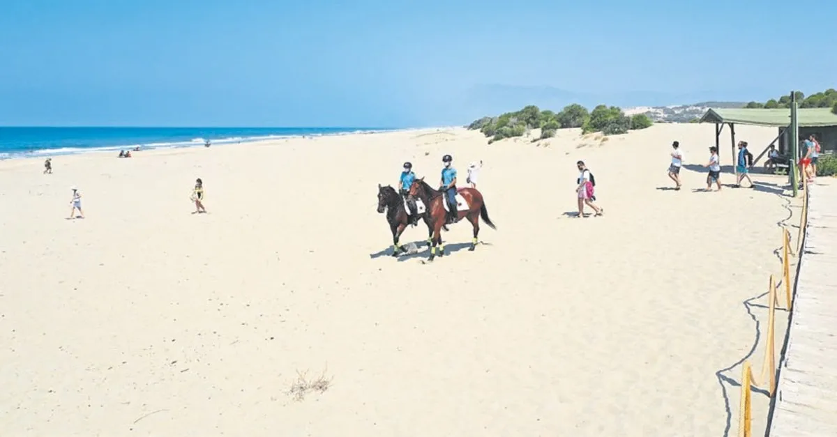 ANTALYA Kaş'taki 'dünyanın en uzun 15 kumsalı' listesinde yer alan Patara Plajı'nda da atlı jandarma timi göreve başladı. 2020'nin 'Patara Yılı' ilan edilmesiyle bölgede turist sayısında artış olduğu kaydedilirken, atlı jandarma timine plajda ve ören yerinde vatandaşlar büyük ilgi gösterdi, bol bol fotoğraf çekti.