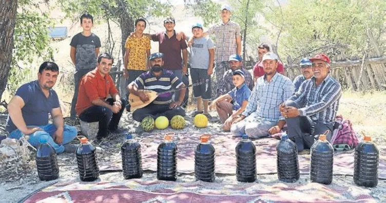 ANTALYA'NIN Elmalı ilçesinde, yaşayan Emin Çetin, Ramazan Akay ve Halil Yılmaz da imece usulü aileleriyle birlikte atadan kalma yöntemle 'katran yağı' üretiyor.