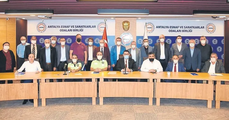 ANTALYA'DA ulaşım esnafının gelen durumu ve yaşadıkları sıkıntılar Antalya Esnaf ve Sanatkarlar Odaları Birliği'ndeki (AESOB) toplantıda masaya yatırıldı. AESOB Başkanı Adlıhan Dere başkanlığındaki toplantıya, Antalya Trafikten Sorumlu İl Emniyet Müdür Yardımcısı Cemil Doğan, Trafik Denetleme ve Tescil Şube Müdürü Orhan Tezcan ile 19 ilçede faaliyet gösteren şoförler, servisçiler, otobüsçülerin temsilcileri katıldı.