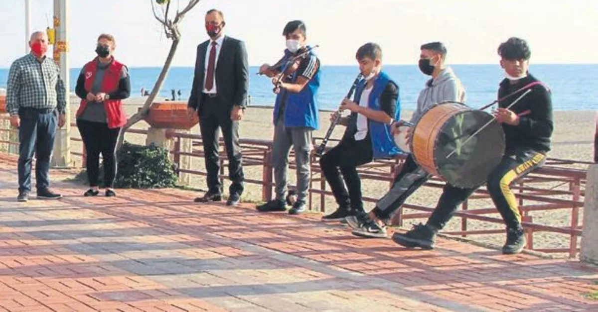 ALANYA Gençlik Merkezi tarafından koronavirüse dikkat çekmek ve farkındalık oluşturmak için vatandaşlara dezenfektan ve kolonya dağıtıldı. Dağıtım sonrası müzik kulübü üyeleri müzik dinletisi sundu. Gençlik ve Spor Müdürlüğü binası karşısında İlçe Müdürü Ahmet Eşref Sarı ve kurum çalışanları tarafından gerçekleştirilen etkinlikte, vatandaşlar pandemiye karşı bilgilendirildi. Sarı, " Vatandaşlara maske, mesafe, temizlik kurallarını bir kez daha hatırlattık. Pandemi dolayısı ile yeterince sıkılan vatandaşları bir nebze de olsa moral, ve eğlendirebilmek için güzel vakit geçirmelerini sağlamak için müzik kulübümüze üye gençlerimizle birlikte meydanlardaydık. Hem çaldık hem söyledik hem eğlendik" dedi.
