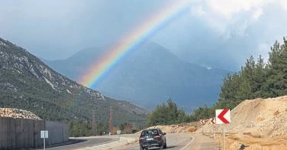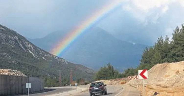 ANTALYA'NIN Kumluca ilçesinde çıkan gökkuşağı güzel görüntü oluşturdu. Yağan yağmurun ardından kendini gösteren güneşin etkisiyle yaklaşık 15 dakika boyunca gözlemlenebilen gökkuşağı büyük bir beğeni ile izlendi.