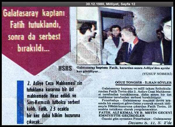 Futbolcuların sahada birbirine girdiği, yardımcı teknik direktörün taraftarla küfürleştiği, 2 kırmızı kartlı bir derbi yaşadı Türkiye… Bize neler oluyor diye sormadan önce biraz geriye dönüp bakmakta fayda var… 1980 yılı.. Yine bir Fenerbahçe – Galatasaray maçı… Bu kez devre arasında daha da ilginç bir olay oluyor Galatasaraylı futbolcu Fatih (Terim) güvenlik güçlerine saldırdığı için göz altına alınıyor! İşte o haber…