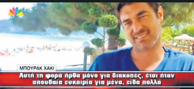 'Dudaktan Kalbe' dizisi ile Yunanistan'da geniş bir hayran kitlesine ulaşan Burak Hakkı, geçtiğimiz hafta Yunan Adaları'na tatile gitti. Ünlü oyuncu, tatili sırasında Yunan kanalı Star Channel TV'ye röportaj verdi. Kanalın haber bülteninde yayınlanan röportajda; Hakkı'nın Yunanistan'daki tatilinden ve rol aldığı dizilerden de kesitler gösterildi.