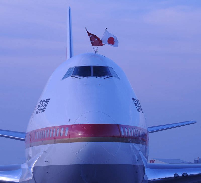 Uçağın üzerinde Japon ve Türk bayrağı dikkat çekti. Başbakan Abe, yanında işadamı ve basından oluşan 100 kişi ile geldi.