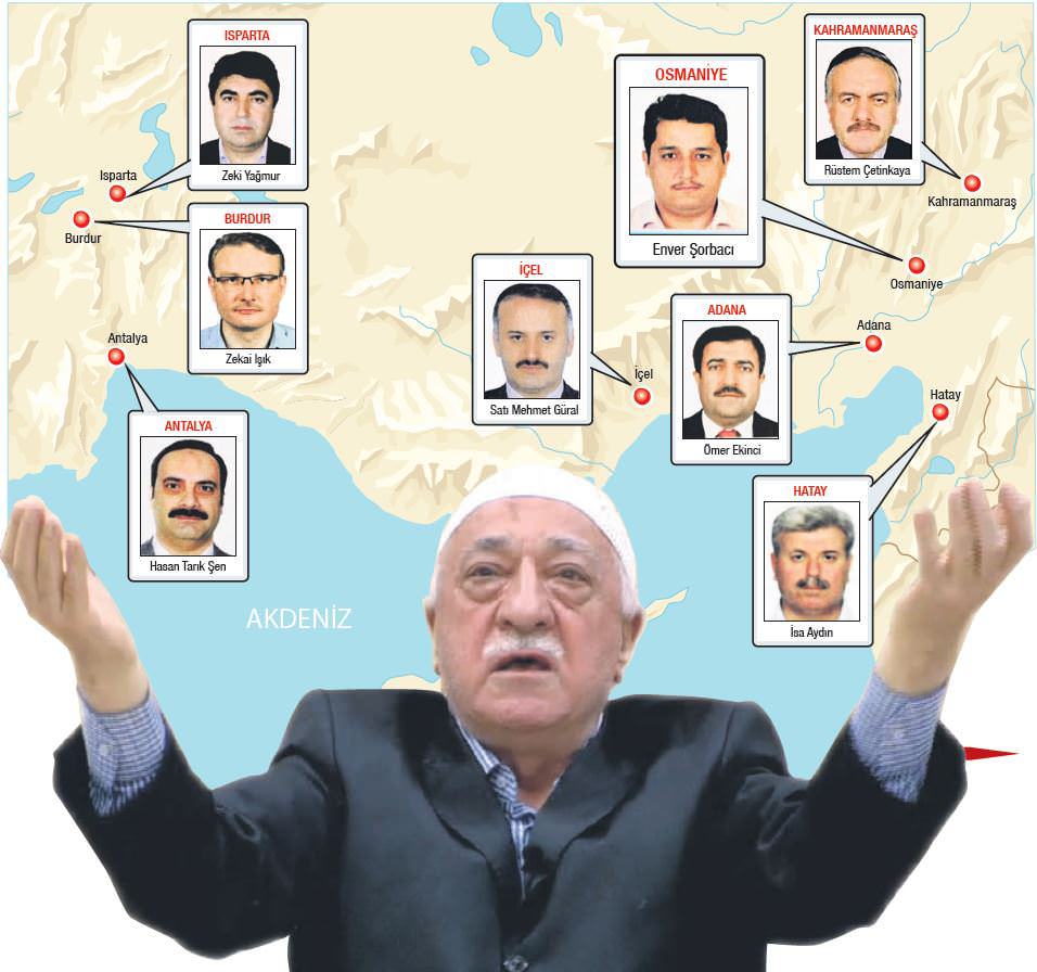 Paralel örgütün skandalları bitmek bilmiyor. Pensilvanya'da yaşayan Fethullah Gülen tarafından yönetilen örgütün Türkiye yapılanmasının temel taşlarından biri olan imamlar, bürokrasi ve siyasetteki çevrelerini kullanarak, kamu kurumlarını çiftliğe çevirdiler. Marmara, İç Anadolu ve Ege'den sonra, bugün de Paralel örgütün Akdeniz Bölgesi imamlarının isimlerini ve marifetlerini açıklıyoruz.