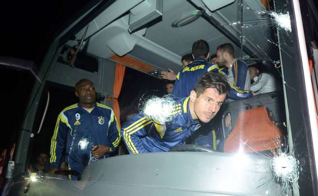 Çaykur Rizespor ile deplasmanda karşılaşan Fenerbahçe'nin otobüsüne Trabzon'a dönüşte silahlı ve taşlı saldırıda bulunuldu. Süper Lig'in 26. hafta maçında Çaykur Rizespor ile deplasmanda karşılaşan ve sahadan 5-1 galip ayrılan Fenerbahçe'nin otobüsüne Trabzon'a dönüşte silahlı ve taşlı saldırıda bulunuldu.