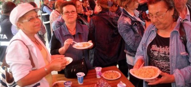 Yapılan konuşmaların ardından, meydana getirilen kazanlar dolusu etli pilav ve ayranlar halka ikram edildi.