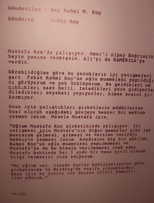Koç'un kurucusu Vehbi Koç'un, oğlu Rahmi Koç'a torunları 'Mustafa Koç, Ömer Koç ve Ali Koç' ile ilgili mektubu ortaya çıktı. STAR
