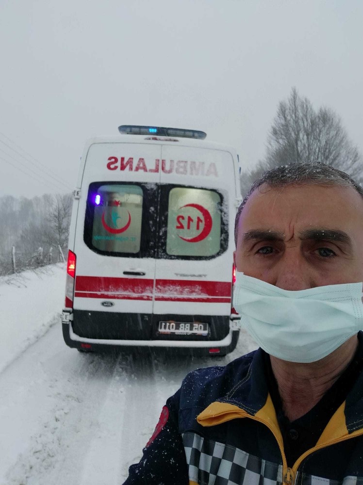 Taşova’da alçak kesimlerde yağmur, yüksek kesimlerde kar yağışı etkili oluyor. İlçeye bağlı Şeyhli köyüne hasta için giden bir ambulans akşam 17.00 sıralarında köyden dönerken 15 santimetreyi bulan kar ve tipiden dolayı yolda kaldı. Bakırpınar (Cırıklar) mezrası 1200 rakımlı Duayeri mevkisinde yoğun tipi yağışı ve sıfırın altında 2 derece sıcaklıkta mahsur kalan ambulans, mezradan gelen bir traktör yardımıyla kurtarılarak yoluna devam etti.