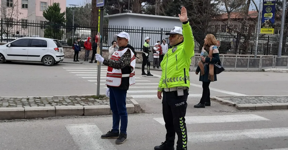 Okul geçit görevlileri, polis memurlarının talimatları doğrultusunda araçları durdurup okul çıkışı öğrencilerin güvenli bir şekilde geçmesini sağladı.