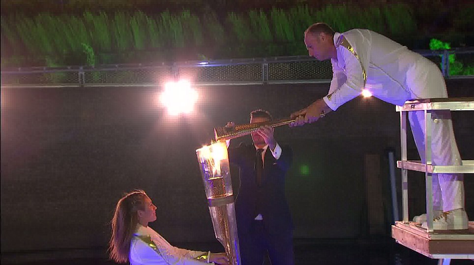 Beckham, meşaleyi İngilizlerin 5 kez olimpiyat şampiyonu olan kürekçisi Steve Redgrave'e verdi. Redgrave, stada kadar taşıdığı meşaleyi, kapıda 7 kişiden oluşan İngiliz sporculara teslim etti.