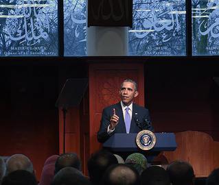 ABD'deki 11 Eylül saldırısının ardından ve özellikle de Fransa'nın başkenti Paris ile San Bernardino'da meydana gelen terör saldırılarından sonra terör eylemlerinin inançlarla ilişkilendirildiğini dile getiren Obama, son dönemde Amerikalı Müslümanlara karşı artan söylemlere de karşı çıktı.