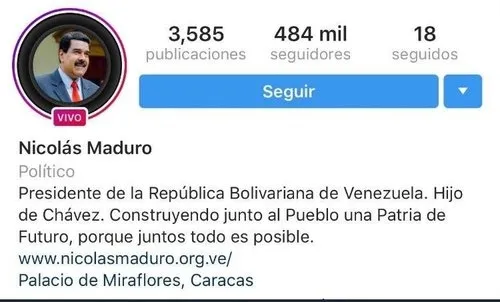 Sosyal medyada ücretsiz fotoğraf ve video paylaşma uygulaması Instagram, Venezuela Devlet Başkanı Nicolas Maduro'nun 485 bin takipçili hesabındaki onay ibaresini kaldırdı.