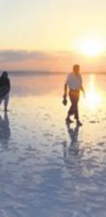 ANKARA'DA yaz mevsiminin gelmesi ile birlikte 7'den 70'e herkes Tuz Gölü'ne akın etti. Tuz Gölü'nü ziyaret edenler özellikle güneş batımına yakın saatleri seçiyor. Ziyaretçiler arasında gelin ve damatlar dikkat çekerken, Tuz Gölü'ne gelen binlerce kişi güneş batarken oluşan güzel manzarada fotoğraf çektirdi. Sıcakların arttığı Temmuz ayında, tuzun üzerindeki suyun çekildiği gözlemlenirken, ziyaretçiler çıplak ayaklarıyla tuzun üzerinde yürümeyi de ihmal etmedi.