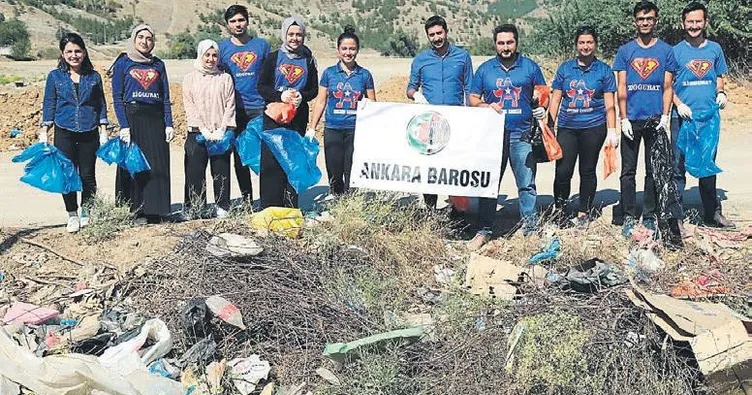 ANKARA Barosu Sosyal Sorumluluk Projeleri Kurulu, '15 Eylül Dünya Temizlik Günü' nedeniyle geleceğe daha temiz bir doğa bırakmak için çevre temizliği etkinliği düzenledi. Etkinliğe, Ankara Barosu Yönetim Kurulu Üyesi Cem Aksu ve Ankara Barosu Sosyal Sorumluluk Projeleri Kurulu Başkanı Onurcan Yazıcı ile çok sayıda avukat katıldı. Ellerindeki çöp poşetleriyle Çankaya ilçesindeki İmrahor Deresi'ne gelen avukatlar, saatlerce çöp topladı. Yaklaşık 50 poşet çöp toplayan avukatlar, önümüzdeki günlerde de Eymir Gölü'nde de temizlik çalışması yapacaklarını söyledi.