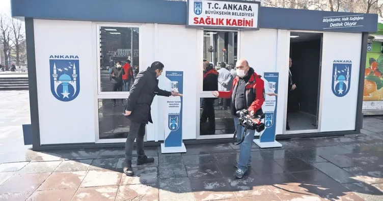 Ankara Büyükşehir Belediyesi, korona virüs tedbirleri kapsamında önlemlerini sıkılaştırıyor. Başkentlilere sağlık hizmeti verilmesi için bir hemşire ve bir sağlık teknisyeninin bulunduğu sağlık kabini uygulaması Kızılay Meydanı'nda hayata geçirildi. Ankara Büyükşehir Belediyesi Sağlık İşleri Daire Başkanı Seyfetten Aslan, kabinlerde korona virüsün en belirgin özelliği olan ateş ölçümünün yanı sıra kandaki oksijen miktarı ve tansiyonun ölçüleceğini belirtti. Vatandaşlara tedirgin olduğu sağlık konusunda hizmet sunmak istediklerini belirten Aslan, "Kızılay'da sağlık kabini uygulamasını ilk kez başlattık. Anlaşmamıza göre üç yerde daha bu kabinlerin uygulamasına başlayacağız. Özellikle Ulus ve Hacıbayram civarında yeni kabinlerimizle devam edeceğiz. Bu kabinlerde sağlık personelimiz, hemşirelerimiz mutlaka bulunacak. Doktorlarımız onlara eşlik edecek. Ya da telefon yolu ile onlara yardımlarda bulunacak. Korona virüsün en belirgin özelliği ateşin yükselmesi. İsteyen vatandaşlarımızın ateşlerini ölçeceğiz. Kanda bulunan oksijen miktarını belirlemek üzere oksimetrelerimiz var. Ayrıca tansiyon ölçümü yapabileceğiz. Kısacası vatandaşımızın ihtiyaç duyduğu hizmeti hemşire arkadaşlarımız en iyi şekilde yerine getirecek. Bu hizmeti daha da yaygınlaştırmak istiyoruz" şeklinde konuştu. Şüpheli vakalarda nasıl bir yol izleyecekleri ve maske eldiven gibi ürünlerin buralardan dağıtılıp dağıtılmayacağı sorusuna Aslan, "Bu konuda Sağlık Bakanlığının yönergeleri var. Hemen 184'ü arayarak onları yönlendireceğiz. Yoğunluğu arttırmamak için maske ve eldiven dağıtımı olmayacak. Sadece ateş, oksimetre ve tansiyon ölçümü gibi hizmetler sunacağız" cevabını verdi.