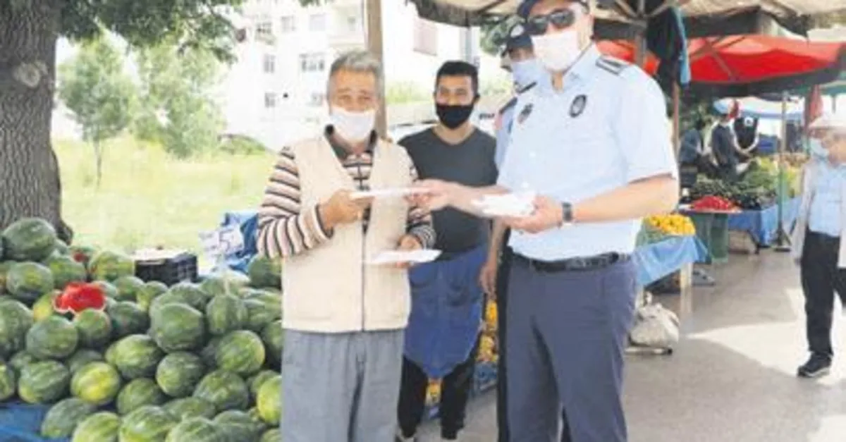 ELMADAĞ Belediyesi, koronavirüs salgınıyla mücadele kapsamında tedbirler almaya devam ediyor. Pazar yerlerinde tezgah aralıklarının yanı sıra sosyal mesafe ve hijyen kurallarına uyulmasıyla ilgili uyarılar yapılırken, maske kullanımının zorunlu hale getirilmesiyle birlikte pazarlara alışveriş için gelen vatandaşlara Büyükşehir Belediyesi Zabıta Daire başkanlığından gelen ekiplerle birlikte maske dağıttı. Elmadağ Belediye Başkanı Adem Barış Aşkın: "Tedbirleri elden bırakmayarak, yaptığımız bu çalışmaların tamamı halkımızın sağlığını koruyup, virüsün yayılmasına engel olmak için. İlçemizdeki hizmetlerimizin aksamaması ve halkımızın sağlığının korunması için ekiplerimiz gece gündüz demeden çalışmaya devam ediyor"dedi.