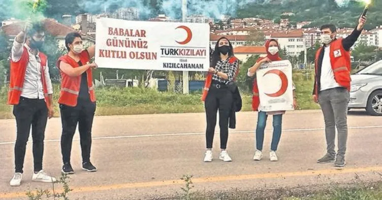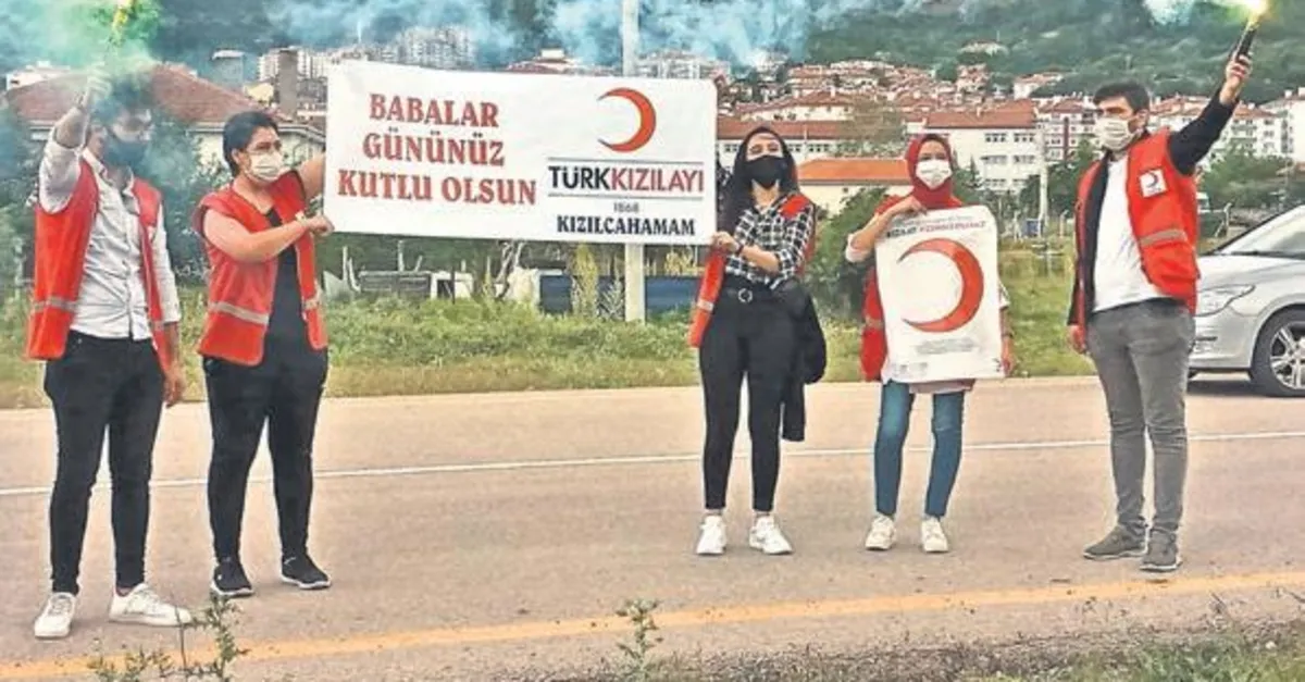 KIZILCAHAMAM'DA sosyal sorumluluk çerçevesinde bir grup gönüllü Genç Kızılay ekibi huzurevindeki yaşlıların, 'Babalar Günü'nü kutladı. Kızılcahamam'da sosyal sorumluluk çerçevesinde Genç Kızılay ekibi yeni tip koronavirüs (Kovid-19) salgını nedeniyle görüşlerin ve ziyaretlerin kapalı olduğu huzurevlerine giderek bir çok yaşlının 'Babalar Günü'nü kutladı. Genç Kızılay ekibi, huzurevi önünde 'Babalar Gününüz Kutlu Olsun'yazılı pankart açtı.