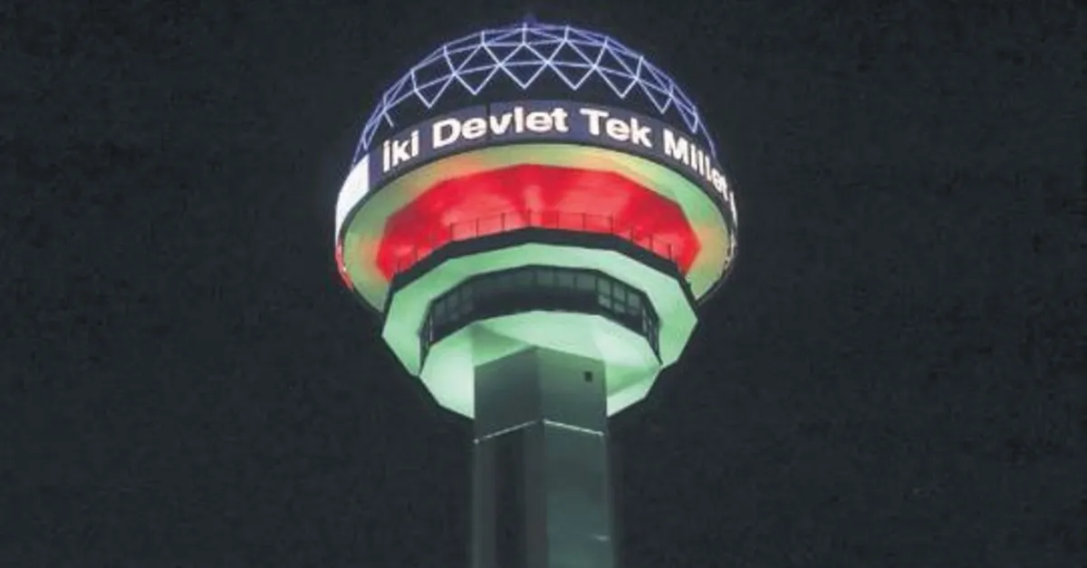 Ankara'da, Azerbaycan'a destek vermek amacıyla kentin simgelerinden Atakule, Azerbaycan bayrağının renkleri ile ışıklandırıldı Başkentte, Ermenistan tarafından gelen saldırılarla mücadele eden Azerbaycan'a destek amacıyla kentin simgesi Atakule, mavi, kırmızı ve yeşil renklere büründü. Kulede yer alan led ekranda, Türk ve Azerbaycan bayraklarının yanı sıra, 'İki Devlet Tek Millet, Can Azerbaycan' mesajı yer aldı.